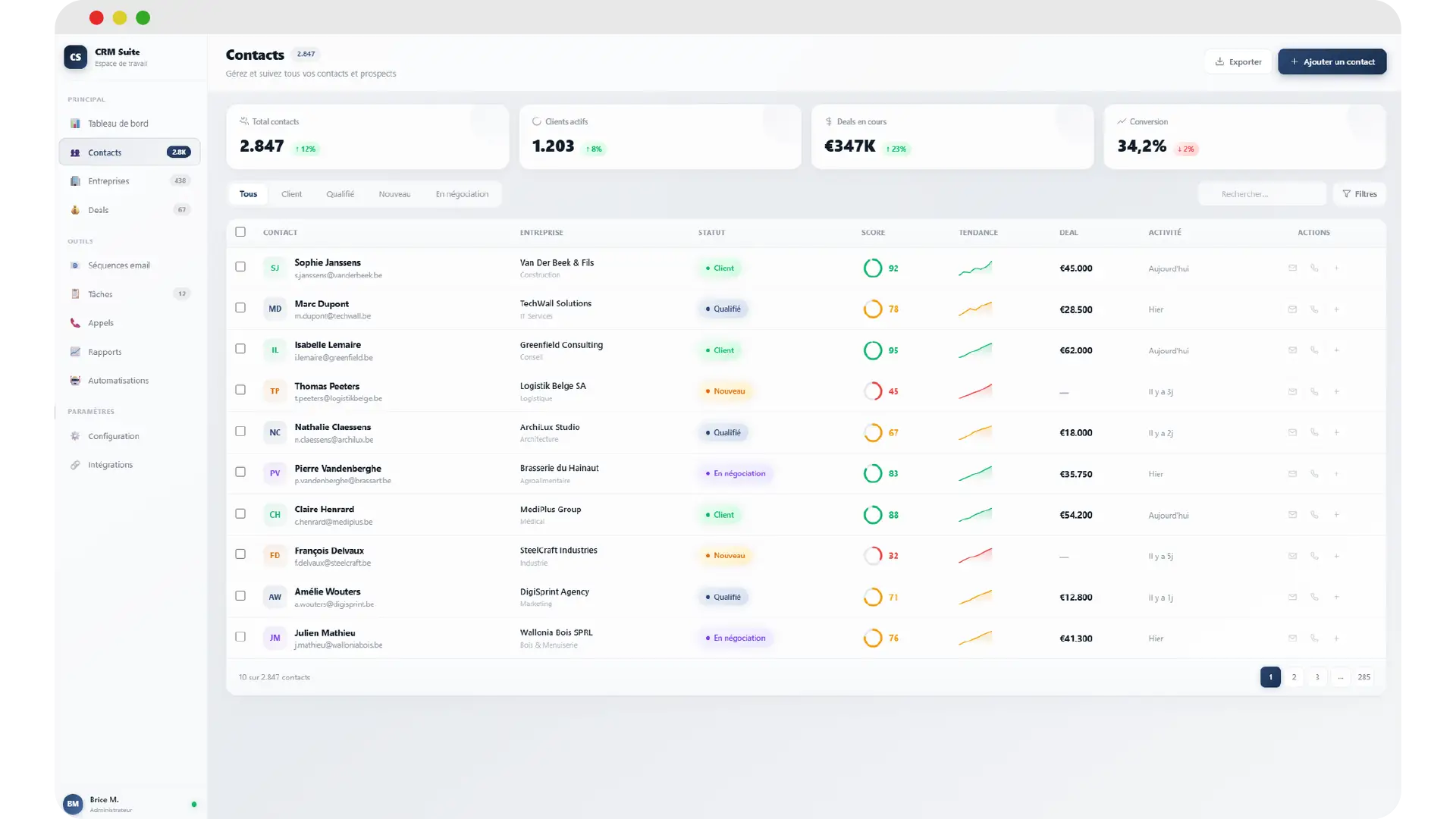 CV Services est la réponse à ce fossé. Une équipe opérationnelle, implantée en Belgique, qui regroupe sous un même toit tout ce dont une PME a besoin pour croître : une stratégie digitale complète, une prospection commerciale automatisée et une gestion intelligente des appels. Pas de sous-traitance. Pas d'intermédiaires. Une seule équipe, un seul objectif : des résultats mesurables.